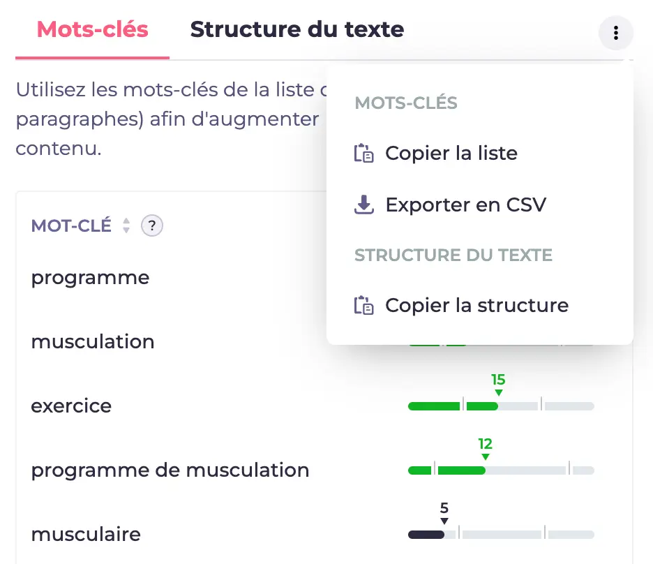 Vérifier la pertinence SEO des mots-clés dans Dokey